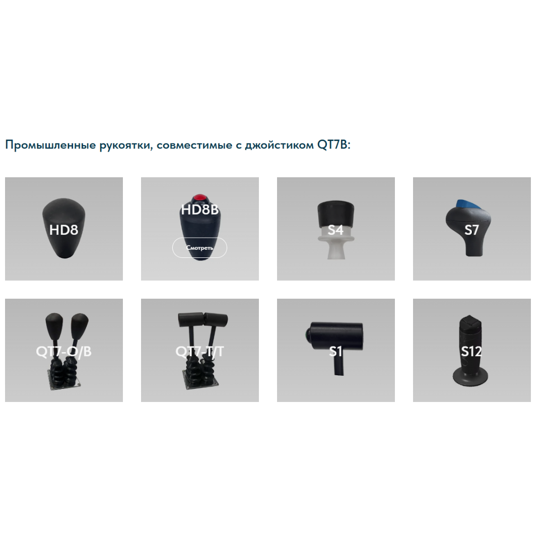 Сдвоенный джойстик QT7 изготавливается на базе джойстиков QT7B или QT7М как с пружинным возвратом в нулевое положение, так и с фиксацией в каждом положении.