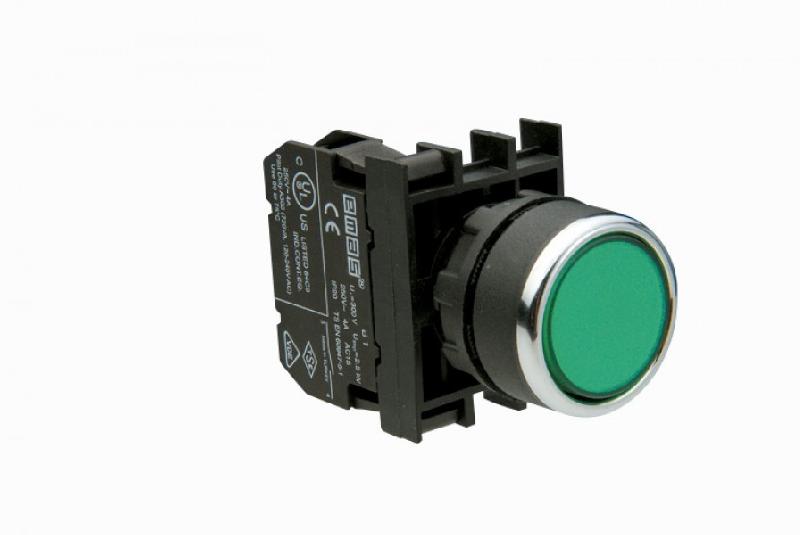 Кнопка (1НО+1НО), зелёный цвет, серия B (250В AC, 4А), IP50 B101DY