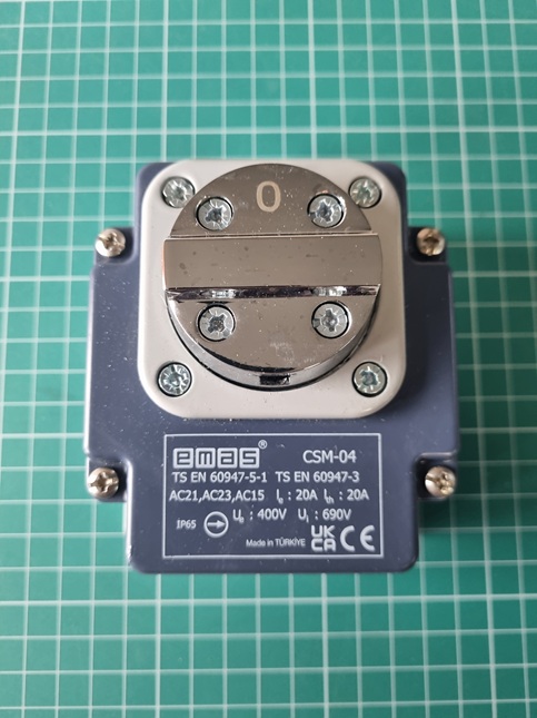—Концевой выключатель с приводом 200мм, угол поворота 360° (2 шага вперёд, 2 шага назад), металлический корпус (400В, 25А), IP65 CSM04