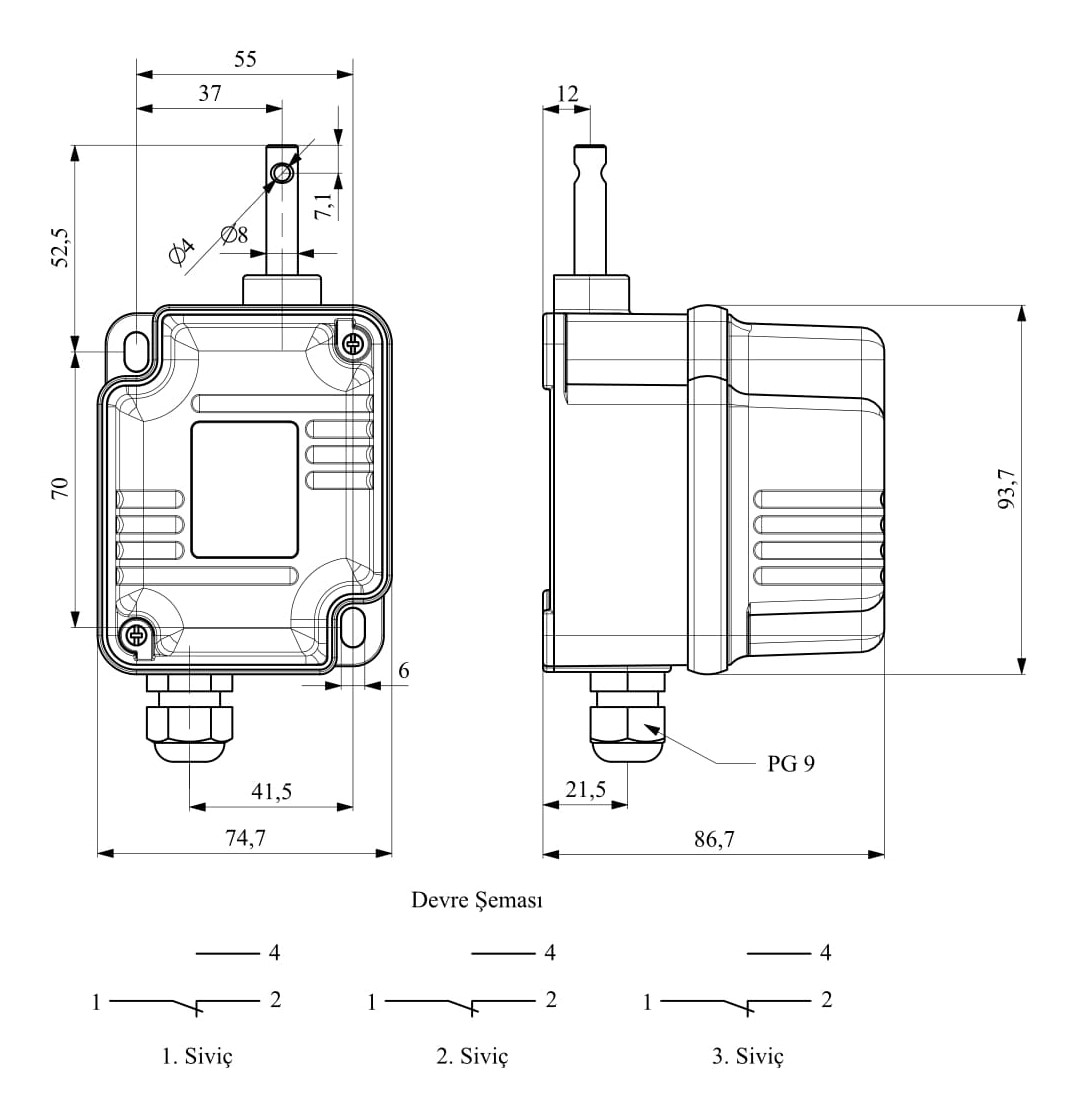 —Концевой выключатель, 3 переключателя, передаточное число 1/100, угол срабатывания 20° (240В AC, 3А), IP67 VT3100