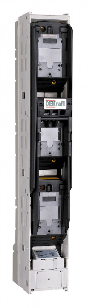 Предохранитель-выключатель-разъединитель вертикальный (ПВР-101) предназначен для включения и отключения нагрузки с видимым разрывом в сетях трехфазного переменного тока до 400 А частотой 50/60 Гц и номинальным напряжением до 690 В. Трехфазное отключение, монтаж на шины.
