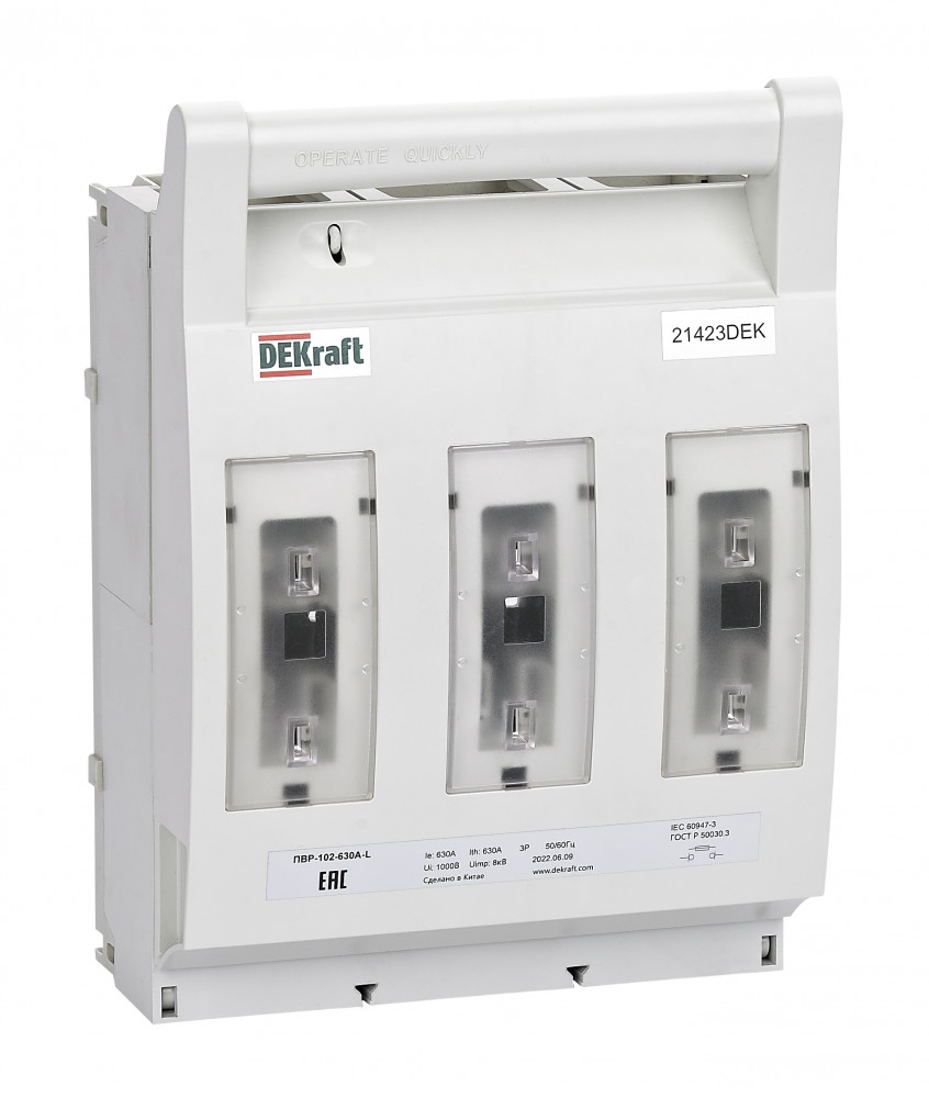Предохранитель-выключатель-разъединитель горизонтальный (ПВР-102) предназначен для включения и отключения нагрузки с видимым разрывом в сетях трехфазного переменного тока до 800 А частотой 50/60 Гц и номинальным напряжением до 690 В. Трехфазное отключение, монтаж на монтажную плату. С дополнительным контактом в комплекте.