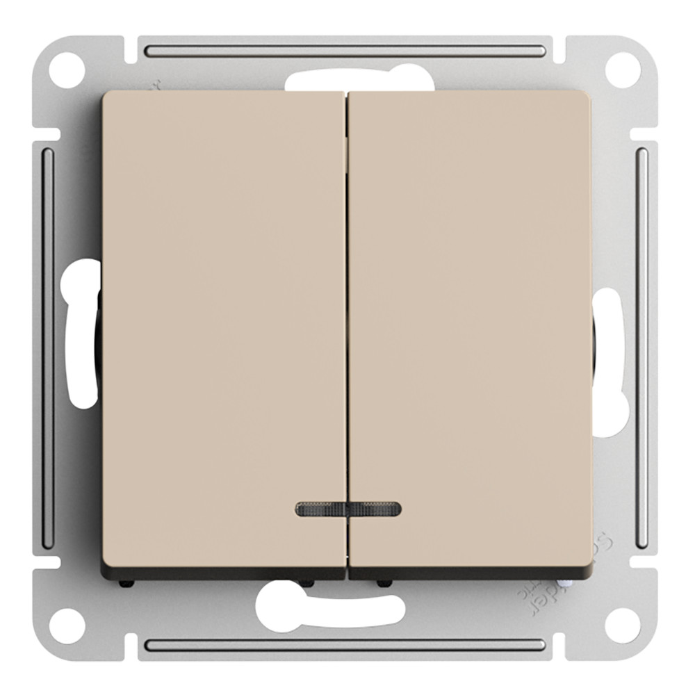 Механизм Systeme Electric (ранее Schneider Electric) серии AtlasDesign в цвете ПЕСОЧНЫЙ выключателя 2-клавишного c подсветкой подходит для сетей 250 В, на ток 10 А.