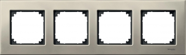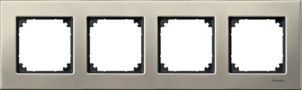 Рамка металлическая 4-местная, титан. наименование: M-Elegance, металл - тип устройства или его аксессуаров: рамка. Преимущества: Безграничные возможности Merten System M. Основой изделий являются высококачественные механизмы скрытого монтажа. Они отличаются высокой гибкостью использования и разнообразием выполняемых функций: это электрические розетки, клавишные и кнопочные выключатели, устройства управления рольставнями и регуляторы температуры, а также телефонные, ТВ/аудио и компьютерные розетки, датчики движения и присутствия, термостаты, светорегуляторы и реле времени, компоненты радиосистемы и системы автоматизации KNX. Merten System M удовлетворяет всем требованиям и успешно решает любые задачи.... применения: Изделия Merten System M подходят для жилых и нежилых помещений. Их устанавливают в школах, офисах, больницах или отелях., Инновационные функции для классических электрических установок, Выполнение функций интеллектуального интерфейса для работы с KNX, Обеспечение комфорта, безопасности и эффективности использования электроэнергии, Возможность простой и гибкой модернизации с System M и системой RF..