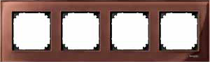 Рамка стеклянная 4-местная, махагон. наименование: M-Elegance, стекло - тип устройства или его аксессуаров: рамка. Преимущества: Безграничные возможности Merten System M. Основой изделий являются высококачественные механизмы скрытого монтажа. Они отличаются высокой гибкостью использования и разнообразием выполняемых функций: это электрические розетки, клавишные и кнопочные выключатели, устройства управления рольставнями и регуляторы температуры, а также телефонные, ТВ/аудио и компьютерные розетки, датчики движения и присутствия, термостаты, светорегуляторы и реле времени, компоненты радиосистемы и системы автоматизации KNX. Merten System M удовлетворяет всем требованиям и успешно решает любые задачи.... применения: Изделия Merten System M подходят для жилых и нежилых помещений. Их устанавливают в школах, офисах, больницах или отелях., Инновационные функции для классических электрических установок, Выполнение функций интеллектуального интерфейса для работы с KNX, Обеспечение комфорта, безопасности и эффективности использования электроэнергии, Возможность простой и гибкой модернизации с System M и системой RF..