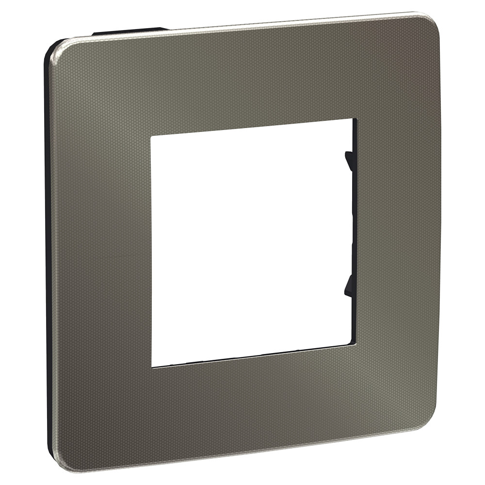 Рамка Schneider Electric UNICA STUDIO Metal никель) одинарная с задней панелью цвета антрацит.