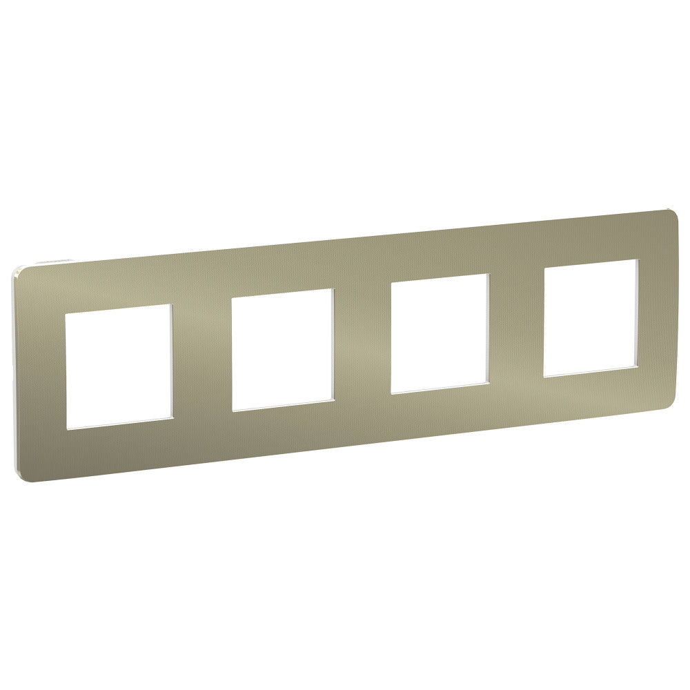 Рамка Schneider Electric UNICA STUDIO Metal (бронза) четырёхместная с задней панелью цвета белый.