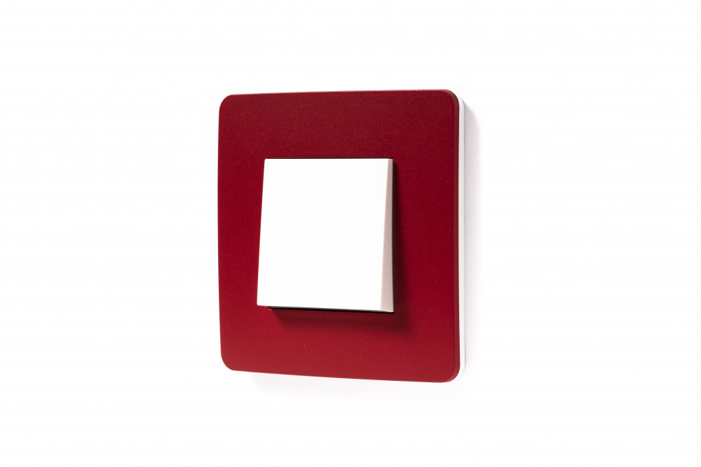 Рамка Schneider Electric UNICA STUDIO Color (красный) одинарная с задней панелью цвета белый.