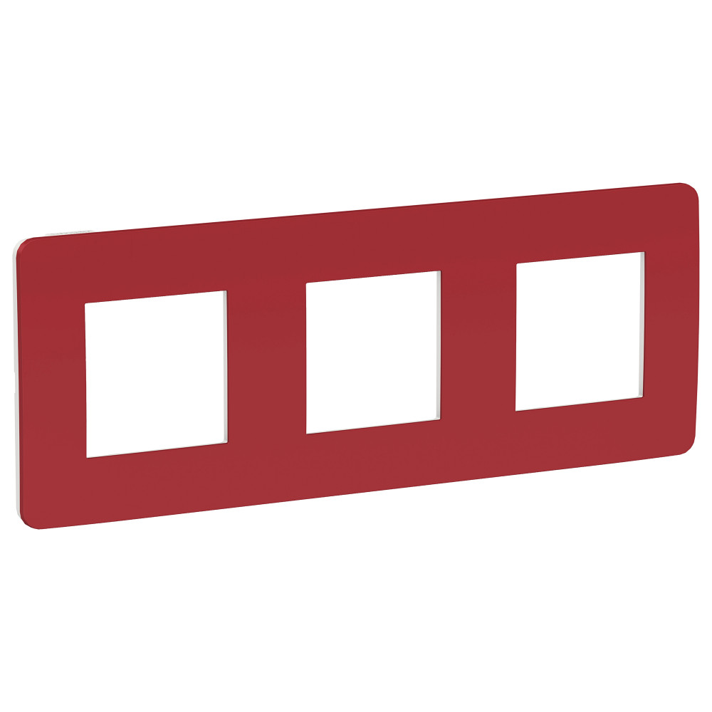 Рамка Schneider Electric UNICA STUDIO Color (красный) трёхместная с задней панелью цвета белый.