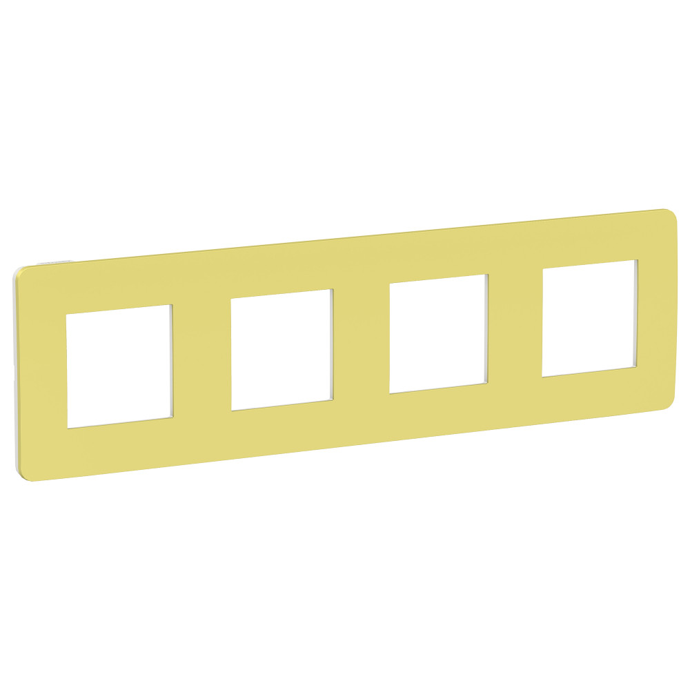 Рамка Schneider Electric UNICA STUDIO Color (зелёное яблоко) четырёхместная с задней панелью цвета белый.