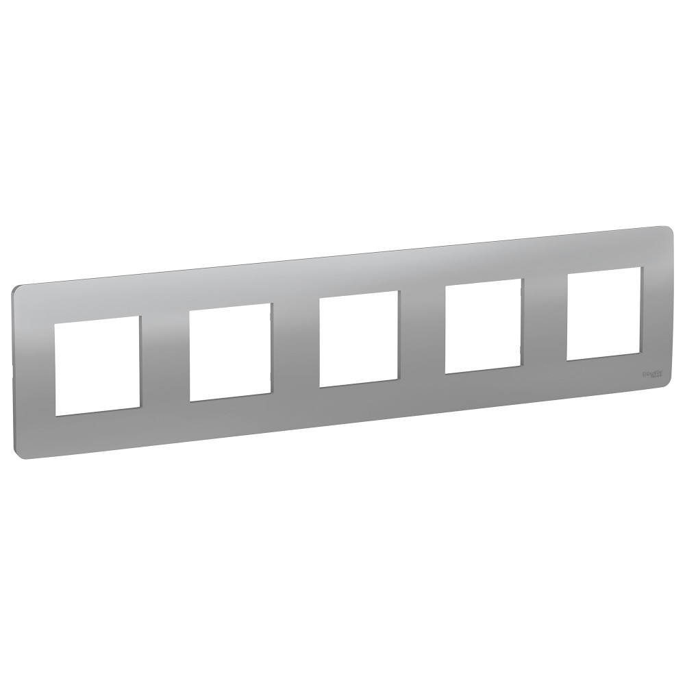 Рамка Schneider Electric UNICA STUDIO (алюминий) пятиместная, устанавливается в вертикальном или в горизонтальном положениях.