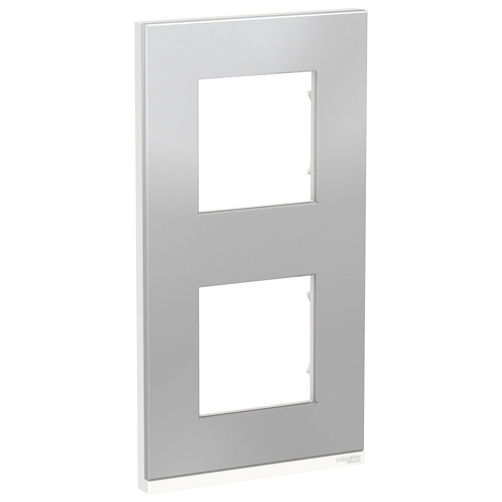 Рамка Schneider Electric UNICA PURE (алюминий матовый) двухместная с задней панелью цвета белый.