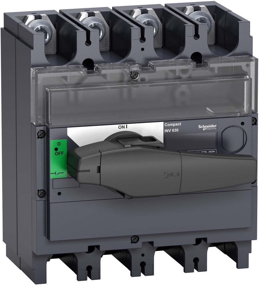 Выключатель-разъединитель серии Compact INV Schneider Electric, 4-полюсный; номинальный ток 400 А; реализует функцию видимого разрыва; тип управления Черная поворотная рукоятка; исполнение - стационарный; монтаж - DIN-рейка, панель; ВхШхГ - 205x185x130 мм.