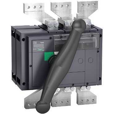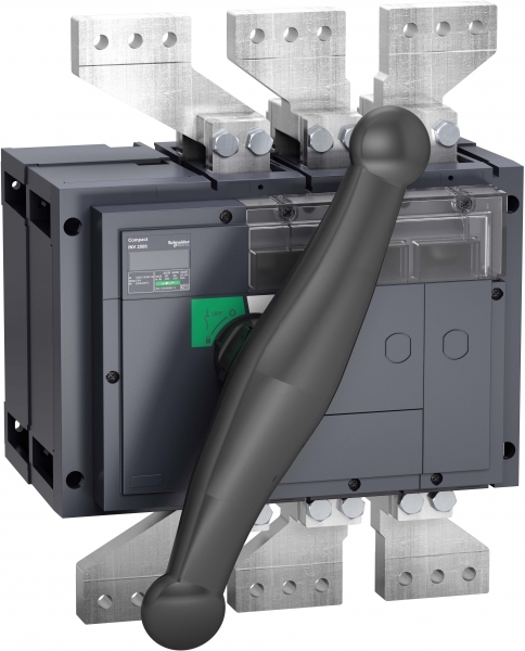 Выключатель-разъединитель серии Compact INV Schneider Electric, 3-полюсный; номинальный ток 2000 А; реализует функцию видимого разрыва; тип управления Черная поворотная рукоятка; исполнение - стационарный; монтаж - DIN-рейка, панель; ВхШхГ - 440x462.5x227.5 мм.